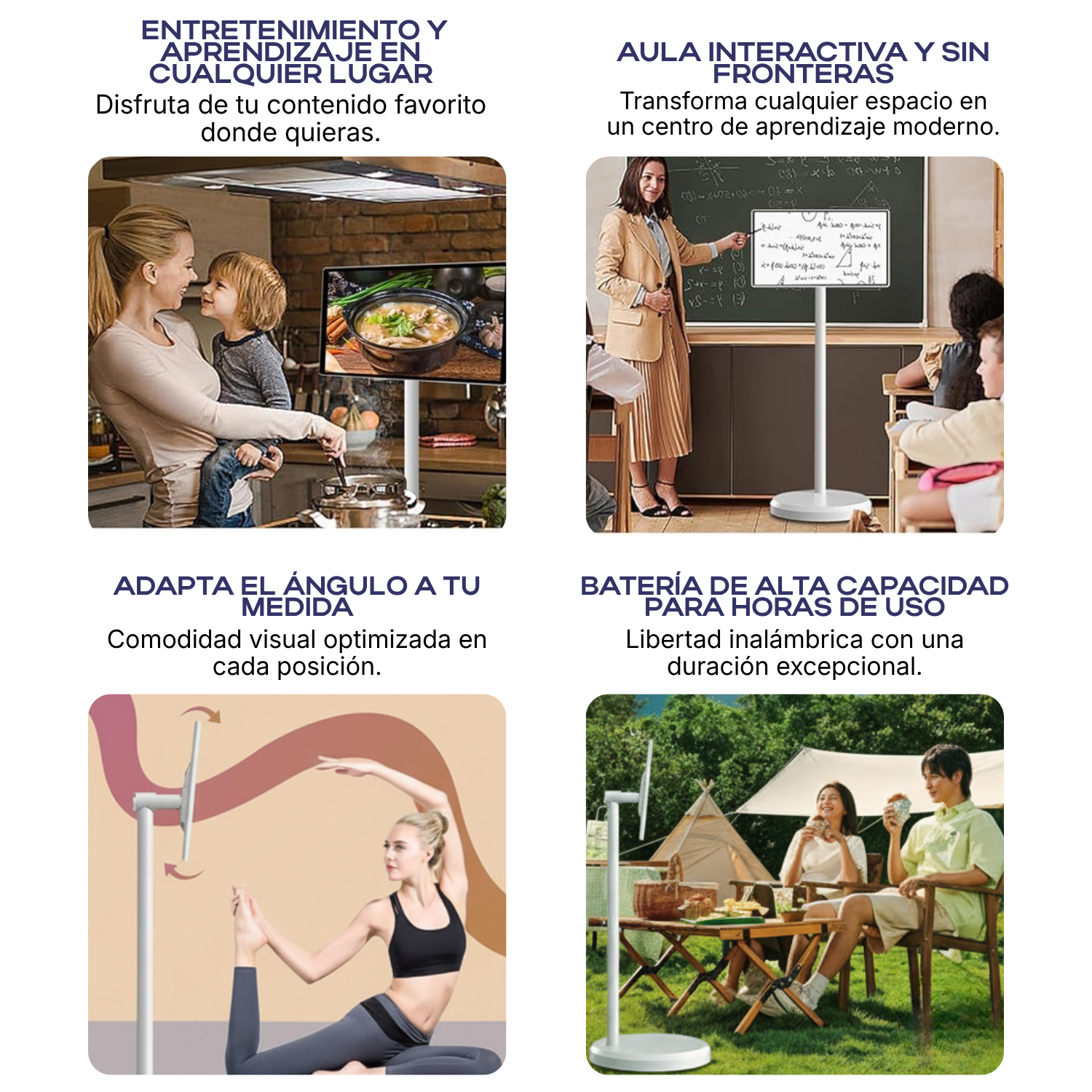 Its powerful 8-core CPU ensures smooth performance for all your apps, while the 10-point capacitive touchscreen offers an intuitive and responsive user experience. With an impressive 18000mAh battery, you can enjoy hours of cordless operation, making it ideal for the living room, kitchen, bedroom, or even outdoor events. Connect effortlessly with dual-band 2.4G/5G Wi-Fi and Bluetooth 5.0, expanding your entertainment possibilities. The adjustable stand allows for ±90° rotation and ±20° tilt, providing optimal viewing angles for any situation. This Smart TV is more than just a TV; it's your portable entertainment hub.